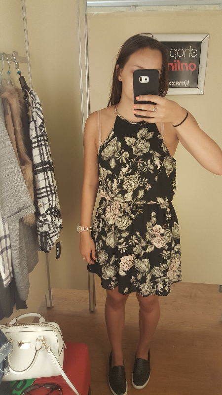 One Clothing Floral Dress - Orig: $22 Now: $16.99: I loved how the light floral pattern paired against the black background in this dress. This would be a great Fall dress since dark florals are such a huge trend right now. However, as you might be able to tell, the top part of the dress was too big for me making me appear wider than I really am. So this dress is a no. (Similar dress here and here)
